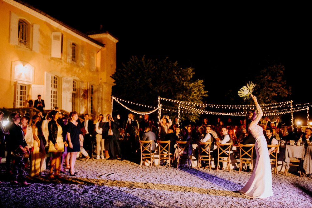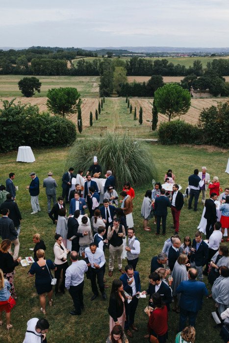 « Nous avons eu la chance de nous marier dans ce lieu magique qu’est le château de Saint-Jean des Plats. Nous avons opté pour une cérémonie laïque que nous avons faite à l’arrière du château avec une vue splendide sur les montagnes noires, puis nous sommes repassés à l’avant pour le vin d’honneur, d’où nous avons pu profiter du couché de soleil sur les Pyrénées. Perché sur les hauteurs de Castelnaudary, la vue est imprenable, nos convives et nous même avons été subjugués par ce lieu d’exception.